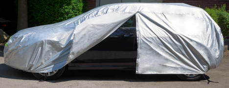 Deze auto-cover is waterdicht en ademend en geschikt voor buitengebruik.